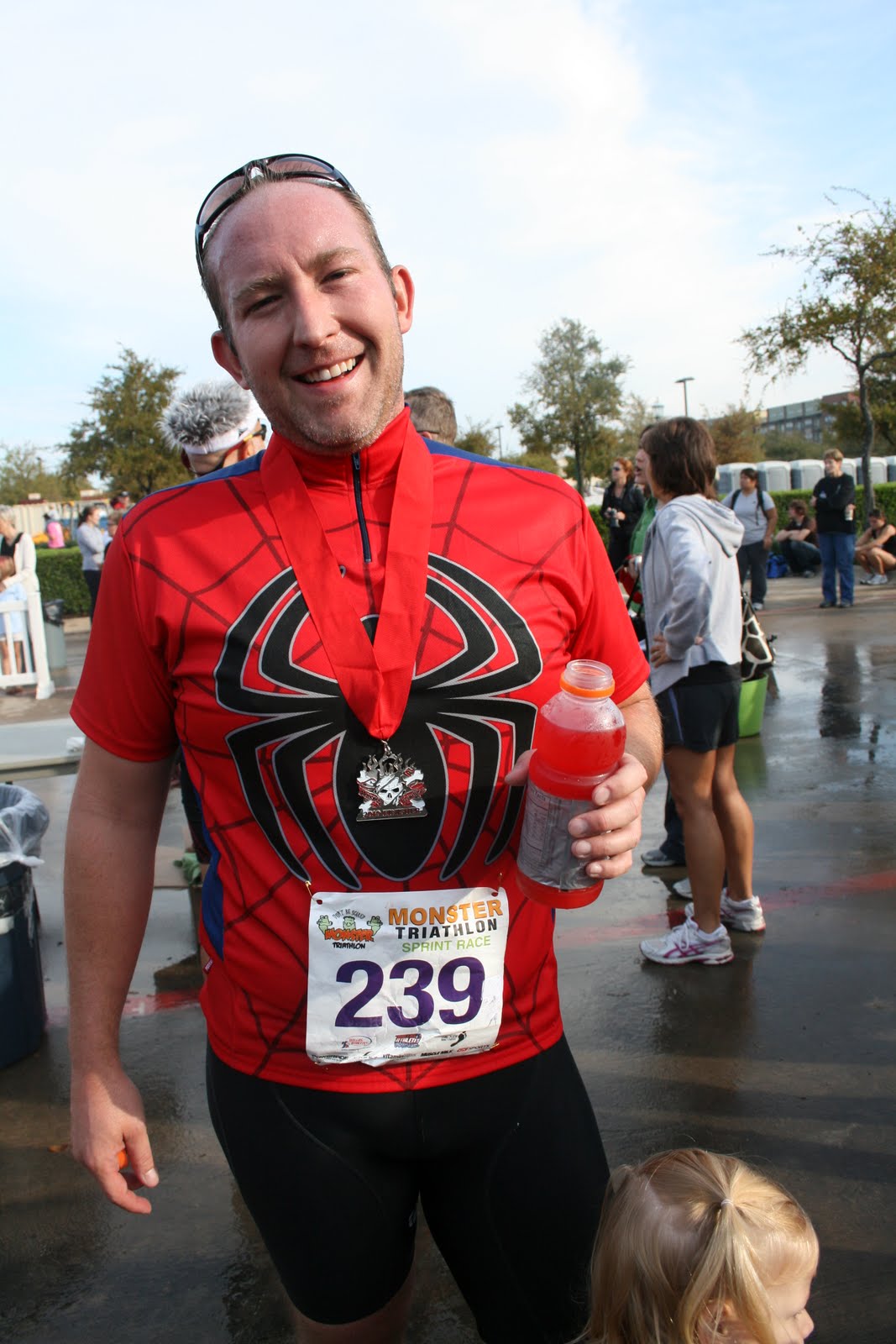 About three months ago, R came home and announced that he was going to train for a triathlon - I wasn't really sure where it came from, but was excited for him to work toward a goal. Fast forward to Saturday, and we were all up EARLY for the Monster Triathlon in our hometown. People travel quite a long distance to enter triathlons, so we're really lucky to have several so close to home! None of us were sure what to expect, but it was a great day! We got to watch him swim, leave and return on his bike, and run across the finish line! R was a little nervous about completing all three events, but he finished ten minutes earlier than his goal - I was so excited and proud for him! We had a lot of fun cheering and people watching, and look forward to the next event in March :)